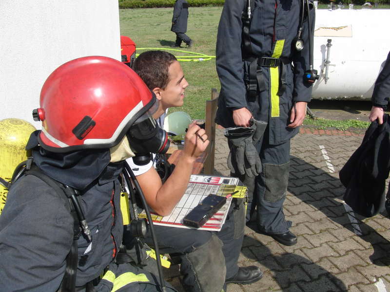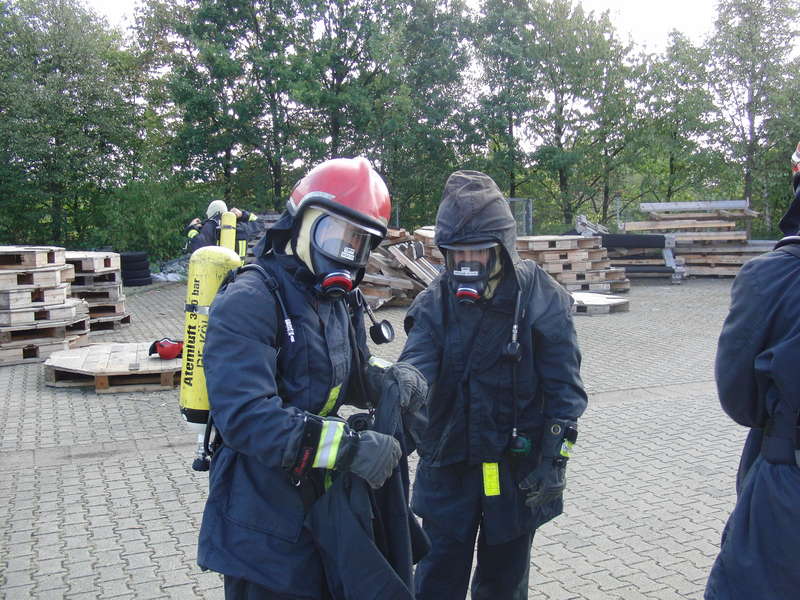 Üben, üben, üben … auch hier wird die Atemschutzüberwachung praktiziert, denn auch das will gelernt sein.Das Schlimmste ist geschafft, jetzt nur noch abkühlen.