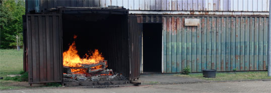 „Ich habe die Hölle gesehen...“ sagte einer der ersten Teilnehmer der Wärmegewöhnungsübung, als er aus dem Brandcontainer wieder ins Freie trat. Auch wenn die Ironie in der Stimme kaum zu überhören war, konnte man sich langsam ausmalen, was einen selbst in den nächsten Minuten ereilen würde. Beginnen wir aber der Reihe nach:Samstag Morgen, 6:15 Uhr: Der Wecker klingelt. Kurz nach 7 Uhr geht die Reise los, die der Ausbildung zum Atemschutzgeräteträger den perfekten, brandheißen Abschluss geben wird. In den letzten Wochen haben Patrick Neumann und Daniel Schuboth bereits etliche Stunden Ausbildung absolviert und die Abschlussprüfung zum Atemschutzgeräteträger gemeistert, heute steht die Wärmegewöhnung auf dem Programm.