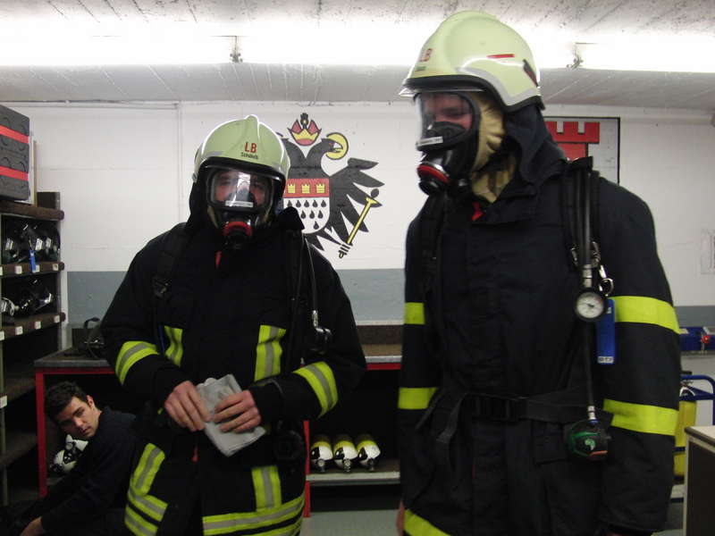 Alle Jahre wieder … muss sich der Feuerwehrmann mehr oder weniger beliebten Herausforderung stellen. Neben der für den Atemschutz-Einsatz obligatorischen amtsärztlichen Untersuchung, der sogenannten „G26“ (eigentlich „arbeitsmedizinische Vorsorgeuntersuchung nach dem berufgenossenschaftlichen Grundsatz G 26.3“) gehört auch die in der FwDV7 vorgeschriebene, jährlich durchzuführende Belastungsübung für Atemschutzgeräteträger dazu.Der Übungsdienst am vergangenen Donnerstag führte aus diesem Grund sechs unserer Kameraden auf die Atemschutzübungsstrecke in der Feuerwache 7 in Porz. Auch wenn nur vier Wehrmänner die jährliche Pflichtleistung zu erbringen hatten, begleiteten zwei weitere Mitglieder unserer Löschgruppe die Prüflinge auf ihrem Weg durch die Übungsstrecke.