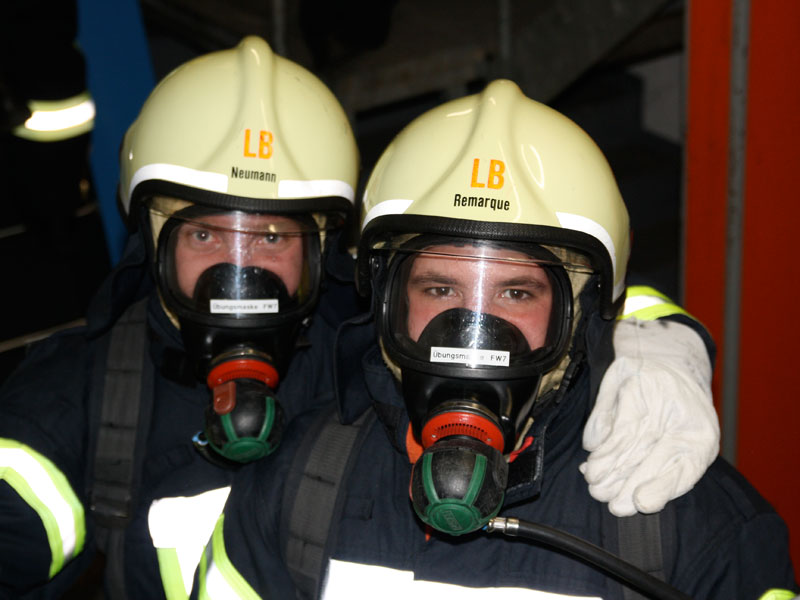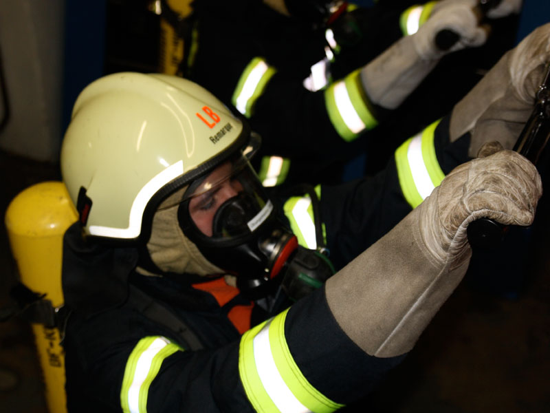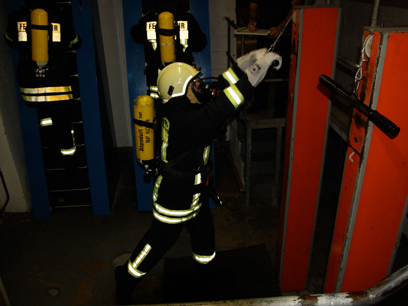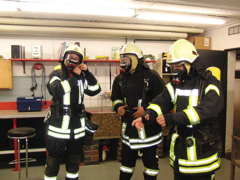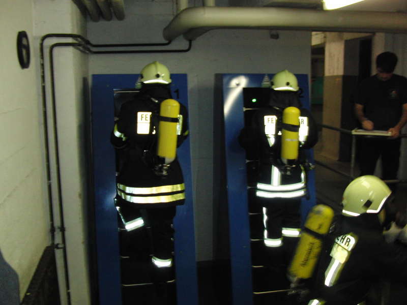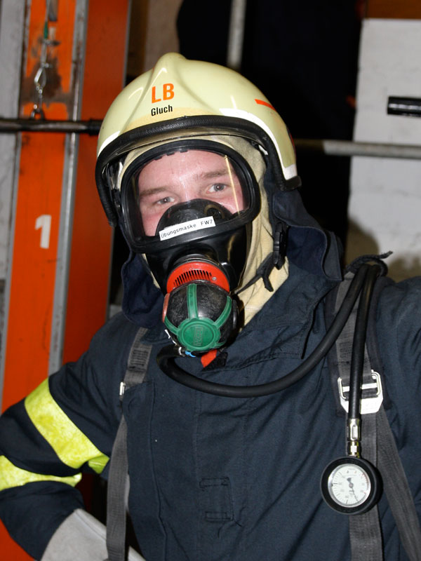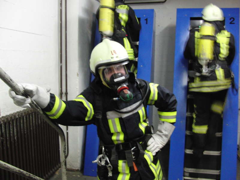 Grundausbildung bekannt ist das immer gleiche Prozedere: Entgegennehmen und Anlegen der Atemschutzgeräte, durchführen der Übung, ablegen der persönlichen Schutzausrüstung. Was hier in einem Satz zusammengefasst wird, ist jedoch nicht so einfach: Die Belastungsübung dauert mindestens 20 Minuten und besteht aus einem ordentlichen Sportprogramm. Im Einzelnen stehen dabei folgende Übungsteile an:- 10 Meter Endlosleiter