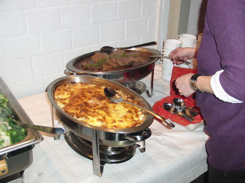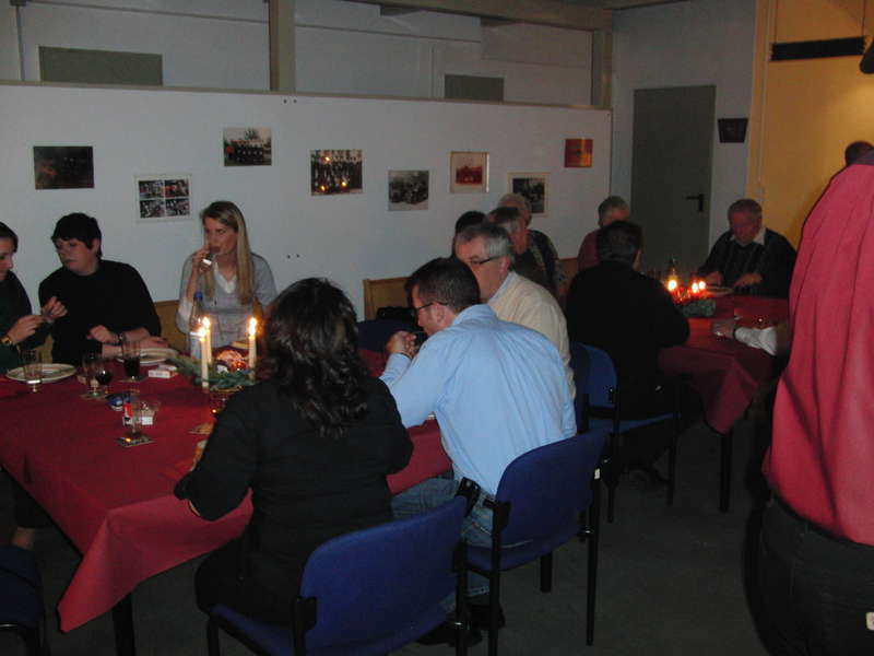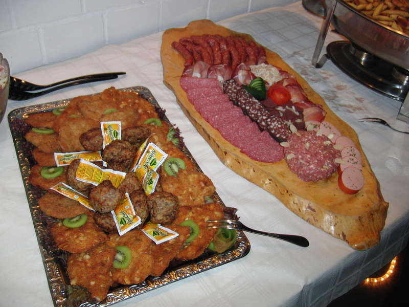 Auf das im Anschluss an die „Bescherung“ eröffnete Buffet herrschte schnell ein reger Andrang, denn die vielfältige Auswahl machte schon bei der Betrachtung der von der Metzgerei Küster aus Wahn gelieferten Speisen Appetit. Auch sonst konnte das Buffet überzeugen: Eine gute Auswahl, leckere Produkte und gut dimensionierte Portionen führten durchweg zu guten Kritiken.