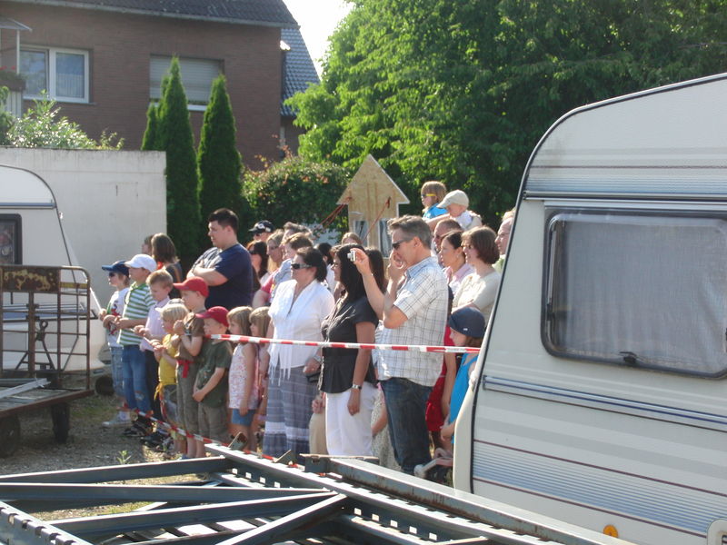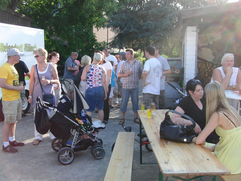 Gegen Abend trat das Kindertanzcorps der Großen Porzer KG Rot Weiß auf und markierte den Startschuss für den nun anstehenden Feier-Abend. Bei immer noch sehr warmen Temperaturen amüsierten sich unsere Gäste bis nach vier Uhr in die Nacht hinein. Die vom Junggesellenverein Libur zur Verfügung gestellte zweite Theke sorgte dabei für Entspannung an der Bierbude, die den Getränke-Bestellungen alleine kaum nachkommen konnte. Den ganzen Tag über herrschte schon eine wunderbare Stimmung, die dann am Abend ihren Höhepunkt fand. Auffallend viele bestens gelaunte Gäste hatten sichtlich Spaß dabei, mit uns einen Tag rund um rote Autos und die Feuerwehr zu verbringen.