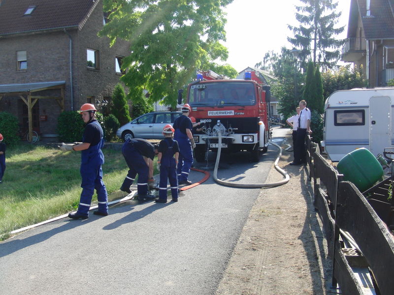 Im Verlauf des Nachmittags rückte unsere Jugendfeuerwehr zu einer Schauübung aus, die von den anwesenden Gästen aufmerksam beobachtet wurde. Da zeigte sich auch, dass sich unsere Jugendarbeit und das ständige Werben für neue Mitglieder lohnt: Beim nächsten Übungsdienst der Jugendfeuerwehr wollen einige interessierte Nachwuchs-Brandbekämpfer vorbeikommen, und sich im Detail über eine Mitgliedschaft in der Jugendfeuerwehr informieren.