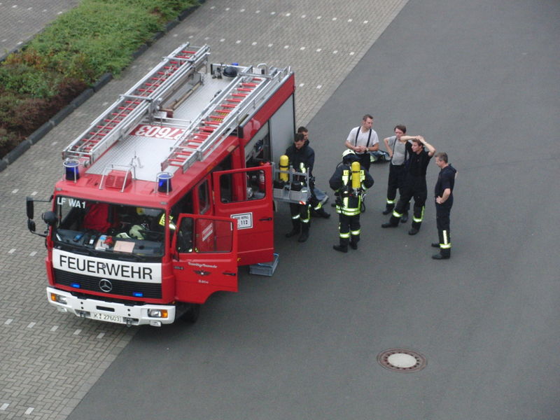 Löschgruppe Wahn war bei ihrem Übungsdienst offenbar auf die gleiche Idee gekommen, sodass rund um das Möbellager ein reger Feuerwehr-Betrieb herrschte, der – wie so oft – auch für ein paar neugierige Passanten sorgte.