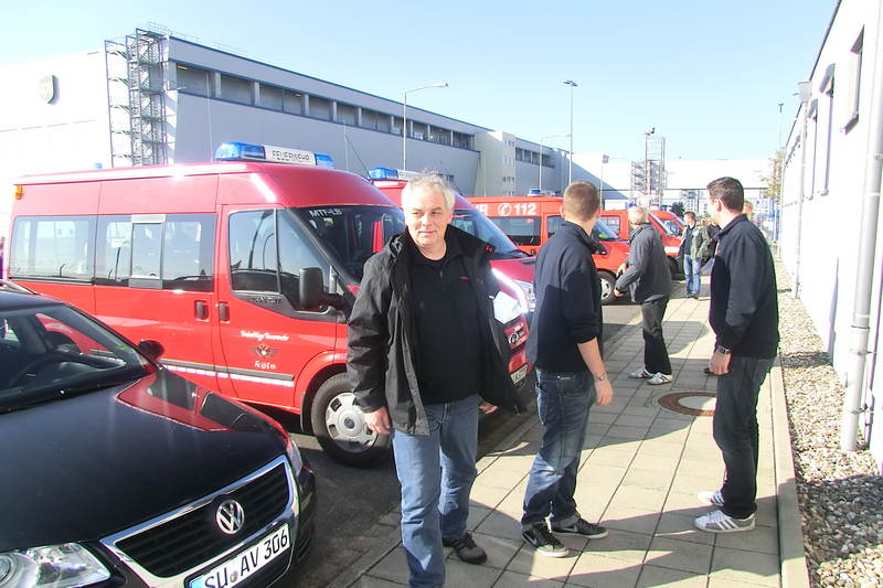Feuerwehrfahrzeuge sind für uns nichts neues. Aber ein so großes Exemplar kann durchaus für ein Erinnerungsfoto herhalten.Im Anschluss an den Besuch bei den Feuerwehr-Kollegen auf dem Flughafen ging die Reise weiter nach Ossendorf, wo auf der